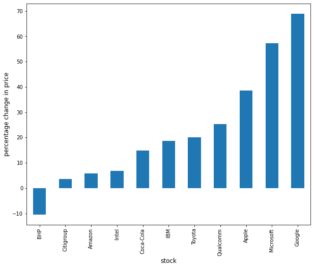 ax.set_ylabel('percentage change in price', fontsize=12)